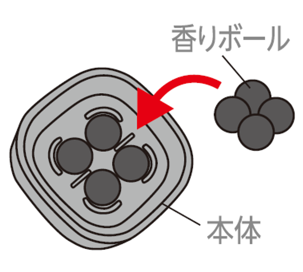 ※使用中や保管の際に香りボールが変色することがありますが、性能上問題ありません。