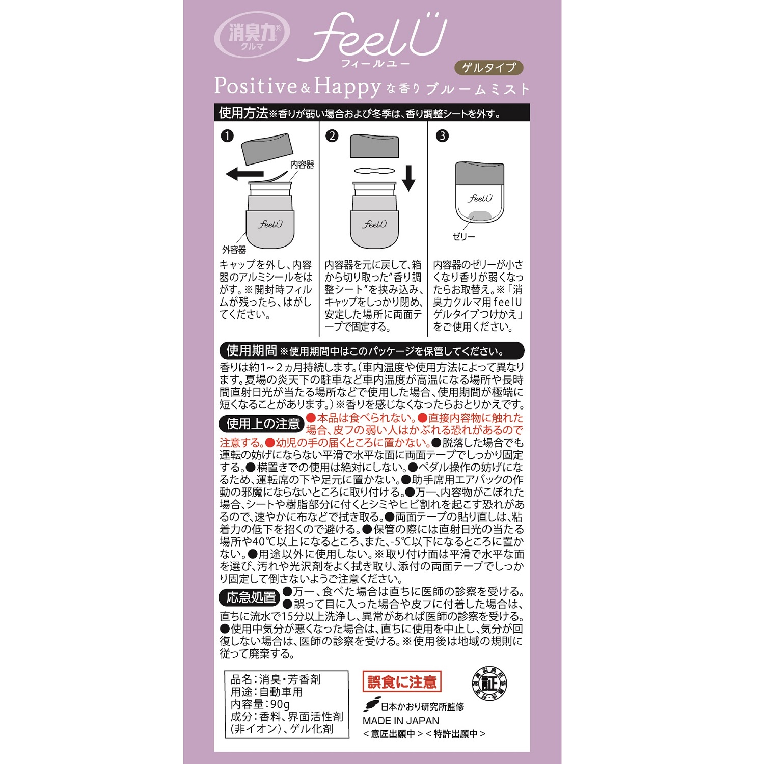 ③内容器のゼリーが小さくなり香りが弱くなったらお取替え。※「消臭力クルマ用f eel Uゲルタイプつけかえ」をご使用ください