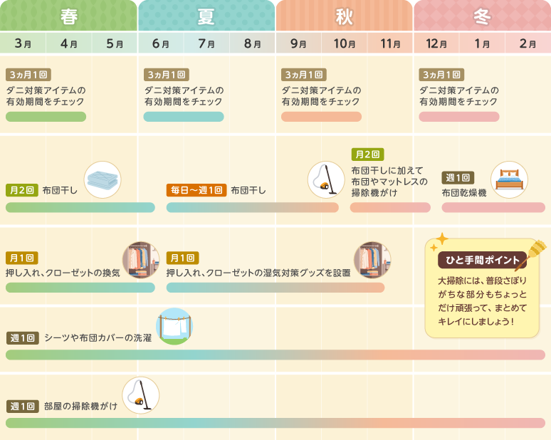 コツコツとダニ対策を続けて、1年中快適な毎日を送りましょう!