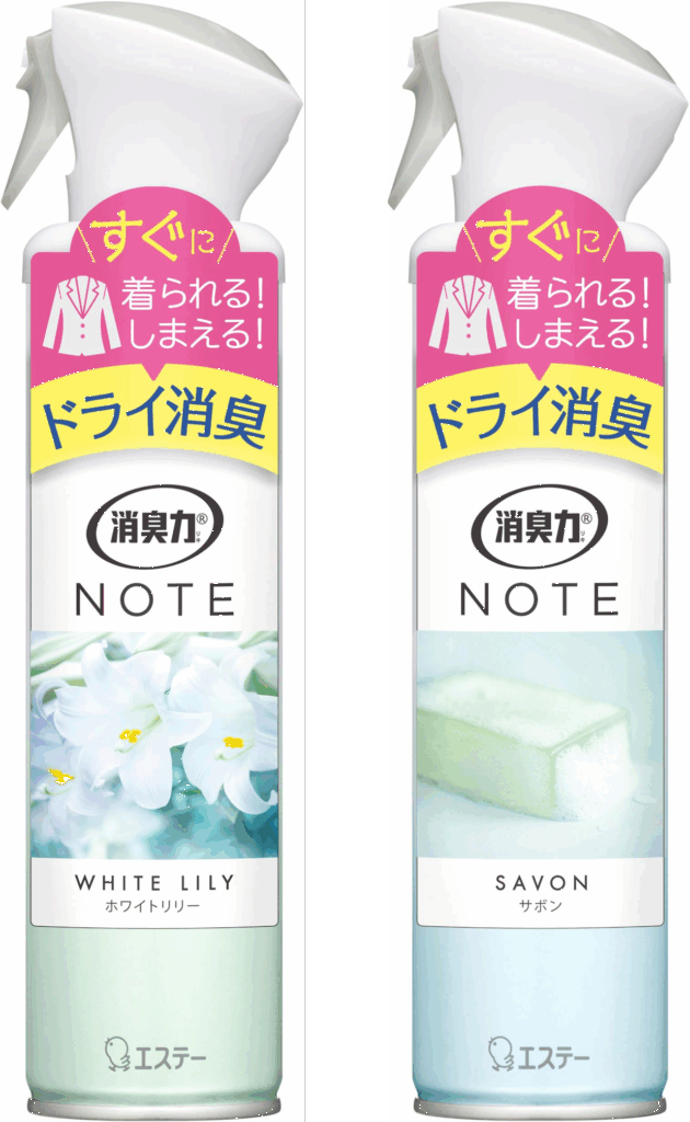 衣類用消臭スプレーは便利な反面、湿ったまま収納すると、ニオイやカビの原因になることも…。そんな不安に応えるのが、「消臭力 NOTE 衣類用スプレー」。スプレー後も衣類が湿りにくいドライタイプで、使用後すぐに着用したり、クローゼットにしまえるのが特長です。帰宅後のケアに取り入れやすい一本です。